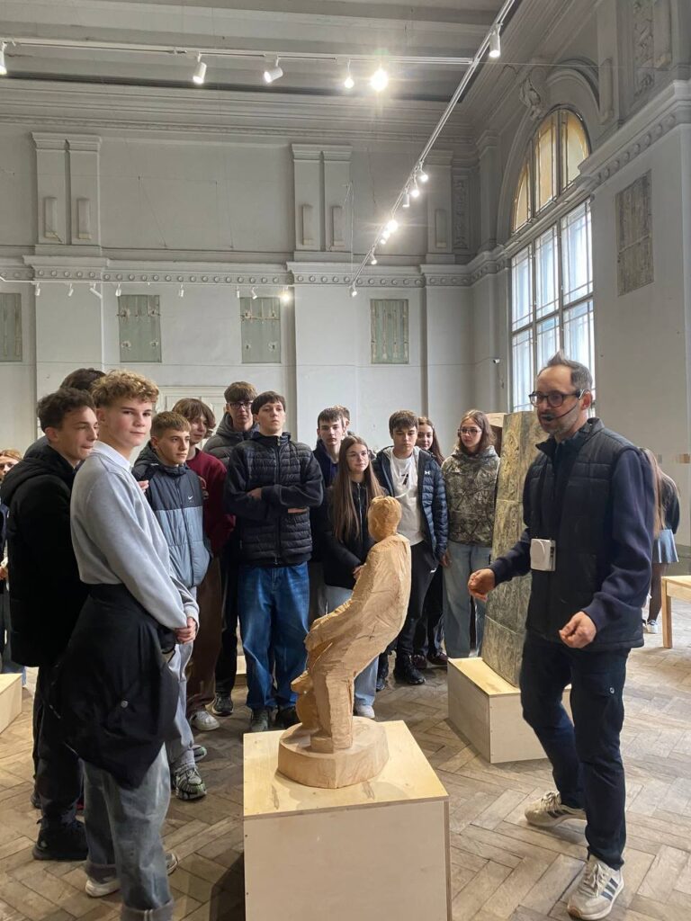 🍂 Саме таким містком для учнів 10-Б класу стала виставка «Гліптотека», де вони познайомилися з вражаючими зразками античної скульптури та дізналися більше про історію пластичного мистецтва.🪵