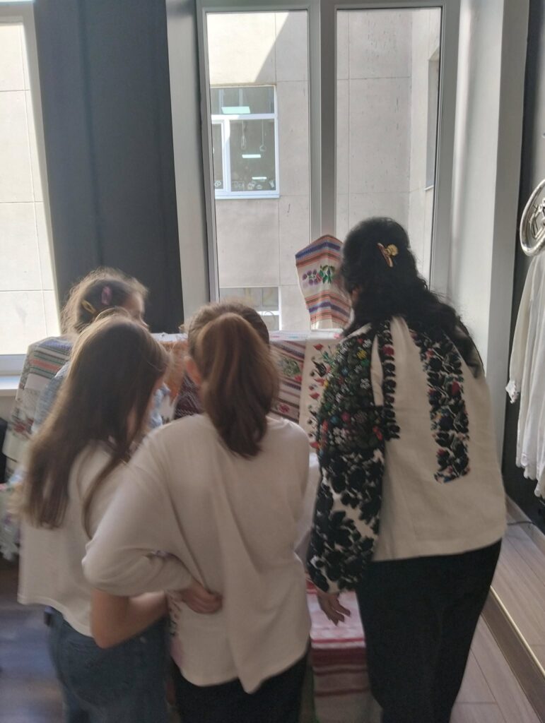 Діти із захопленням розглядали візерунки, дізнавалися про значення кольорів і орнаментів у різних областях, порівнювали техніки вишивки та ділилися враженнями.